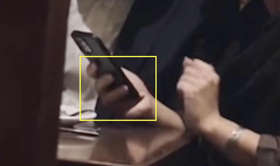 همچنین حالت دست راست که تلفن را با آن نگه داشته طبیعی نیست و به نظر میرسد سه انگشت دارد: