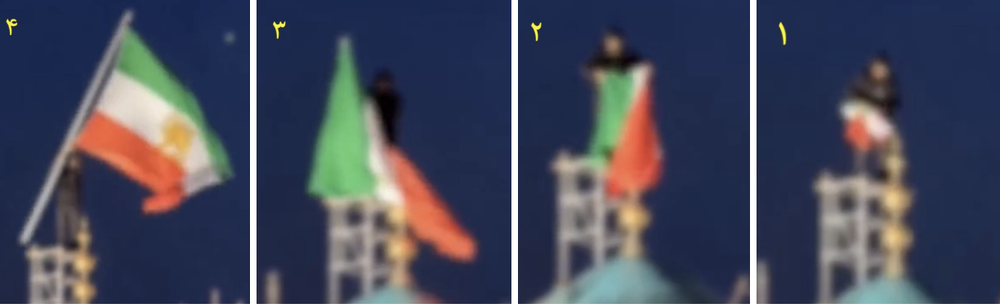 ویدیوی فردی که پرچم شیروخورشید را روی گنبد مسجد شاه اصفهان برافراشته میکند