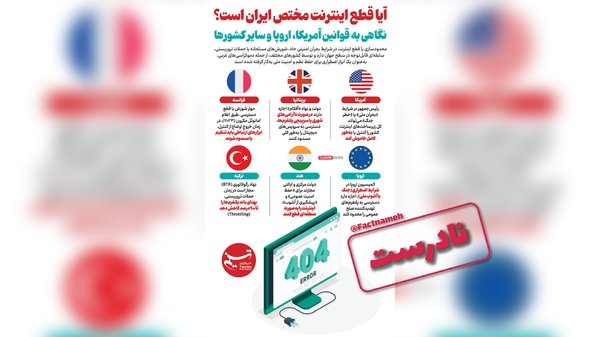 خبرگزاری تسنيمقطع اینترنت مختص ایران نیست و در قوانین آمریکا، اروپا و کشورهای دیگر هم وجود دارد.نادرست