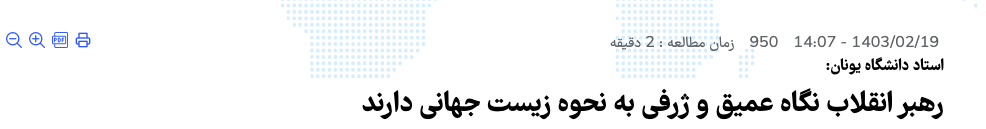 به عنوان نمونه در سال ۱۴۰۳ رایزنی فرهنگی جمهوری اسلامی در یونان به نقل فردی به نام «ثمیس جیماس» که استاد دانشگاه معرفی میشود، مطلبی با این عنوان منتشر میکند: «رهبر انقلاب نگاه عمیق و ژرفی به نحوه زیست جهانی دارند» (لینک بایگانی)