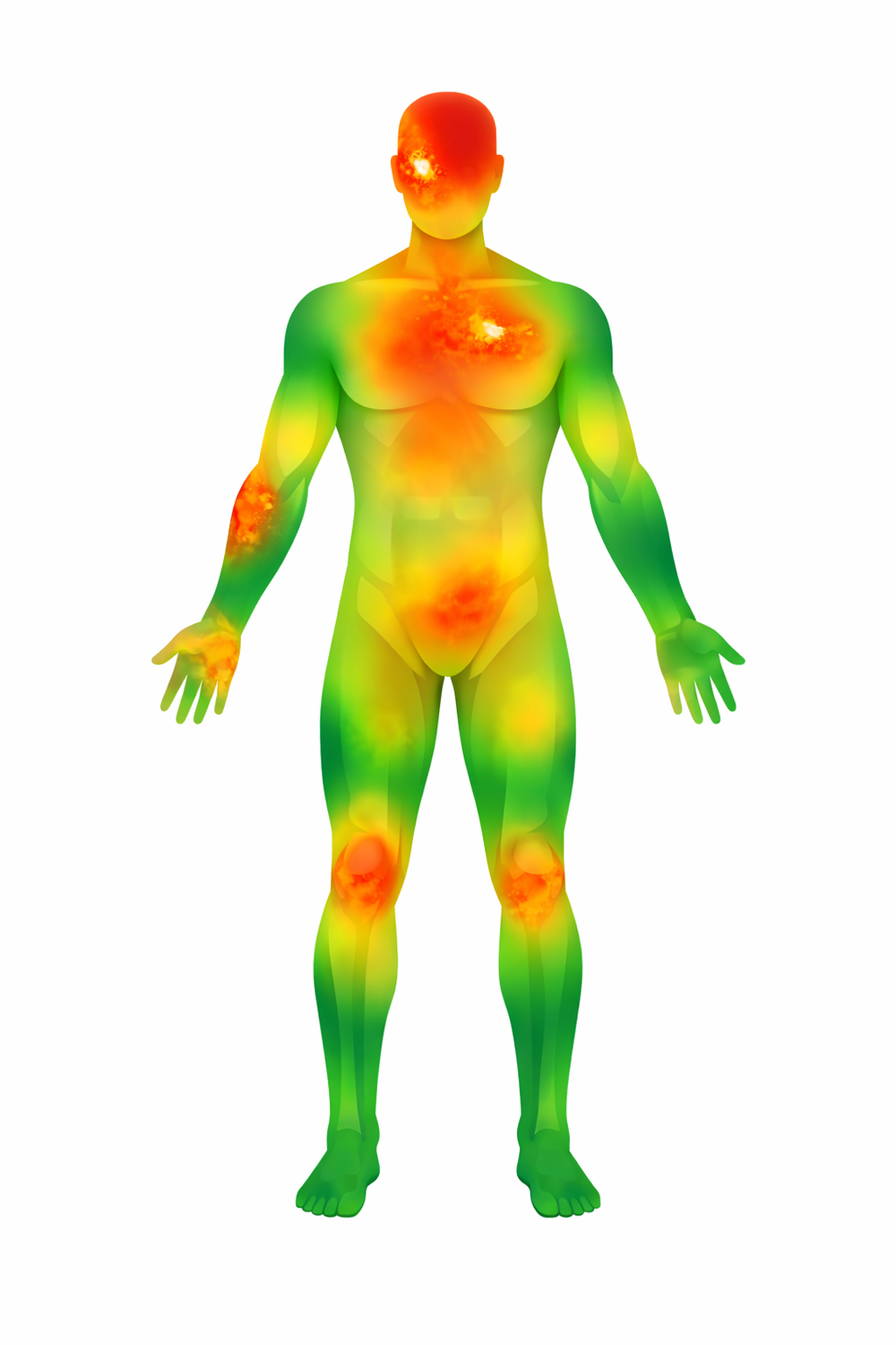 تصویر نقشه حرارتی تولیدشده با هوش مصنوعی از پراکندگی محل اصابت گلوله یا آسیبدیدگی از ۷۸ تصویر رادیولوژی