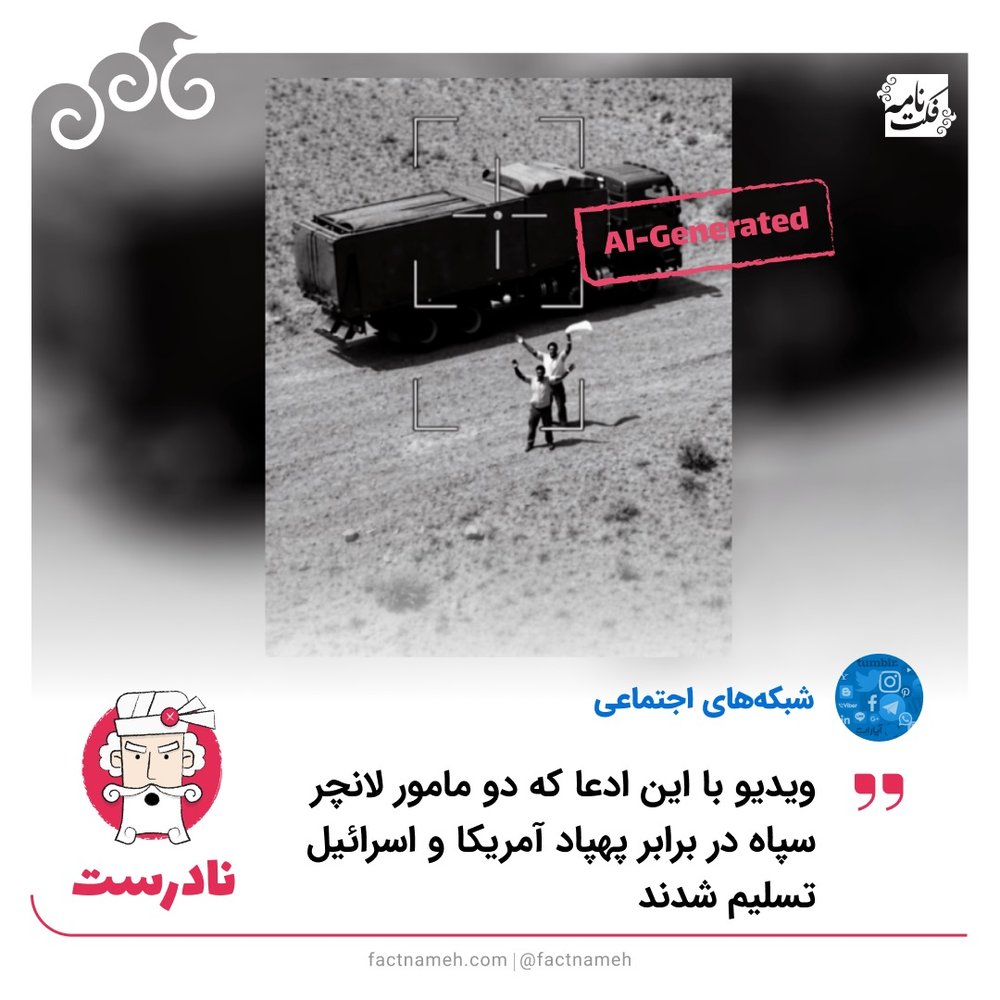 ویدیوی ساختگی تسلیم دو مامور لانچر سپاه در برابر پهپاد آمریکا و اسرائیل